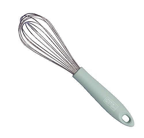 The Great British Bake Off Hand Whisk, Stainless Steel Beaters with Balloon Head, Manual Handheld Baking Utensil with Soft Touch Handle in Duck Egg Blue, Official GBBO Branding