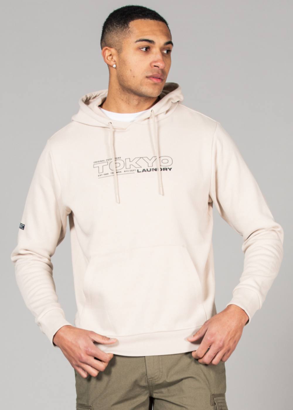Tokyo Laundry Men Cotton Blend Hoody with Branding Print in Stone | Size: X-Large