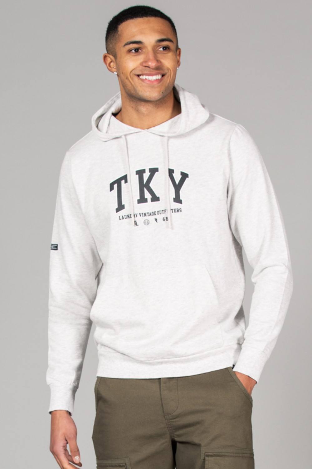 Tokyo Laundry Men Cotton Blend Hoody with Branding Print in Stone | Size: 2X-large