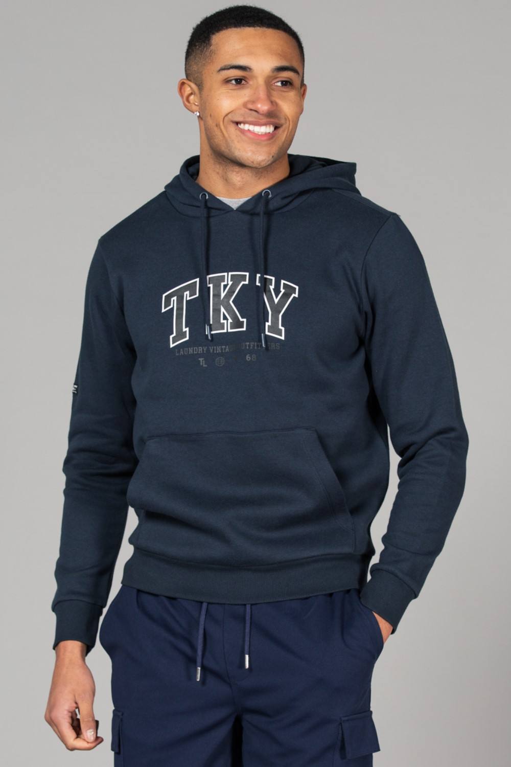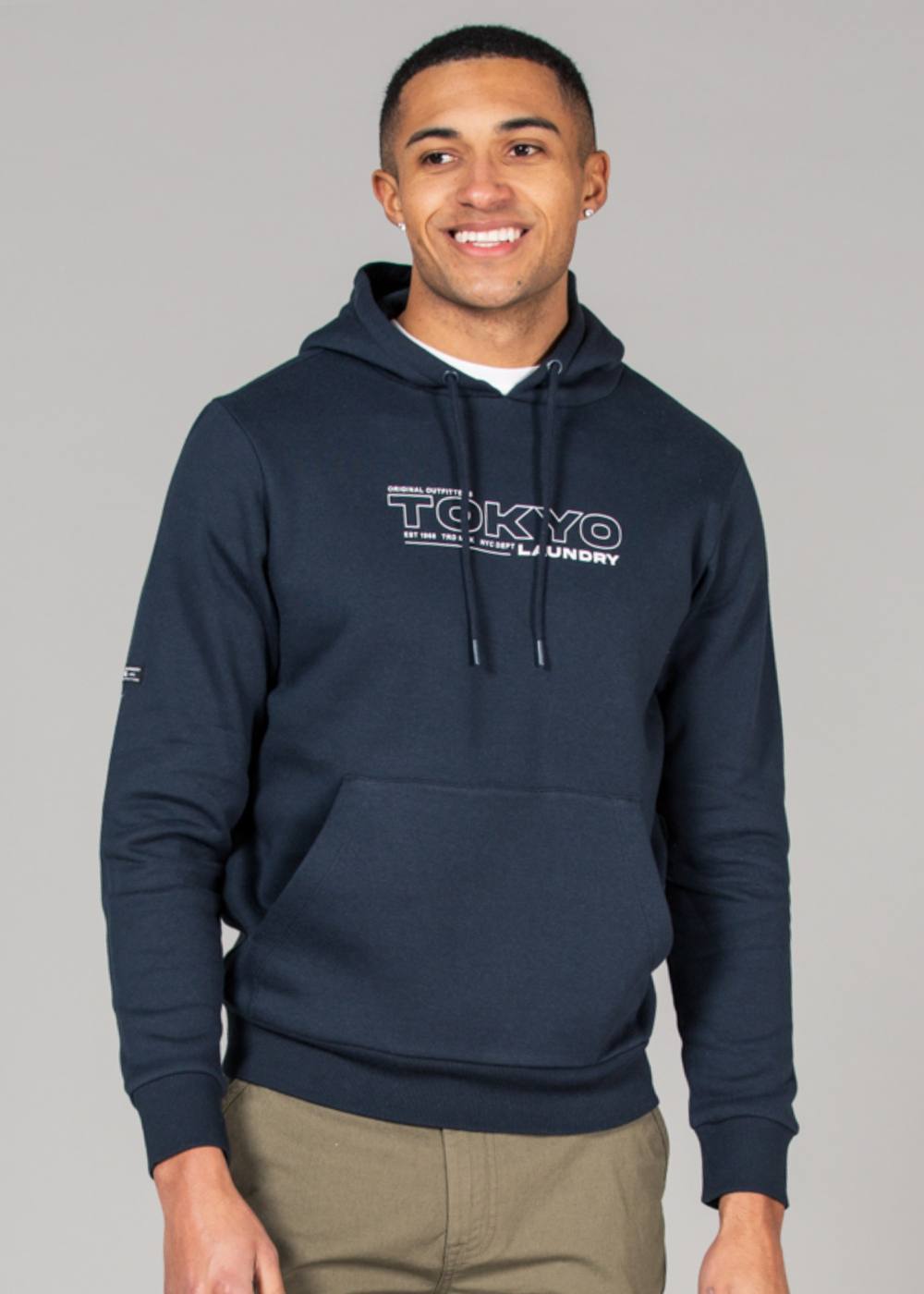 Tokyo Laundry Men Cotton Blend Hoody with Branding Print in Navy | Size: X-Large