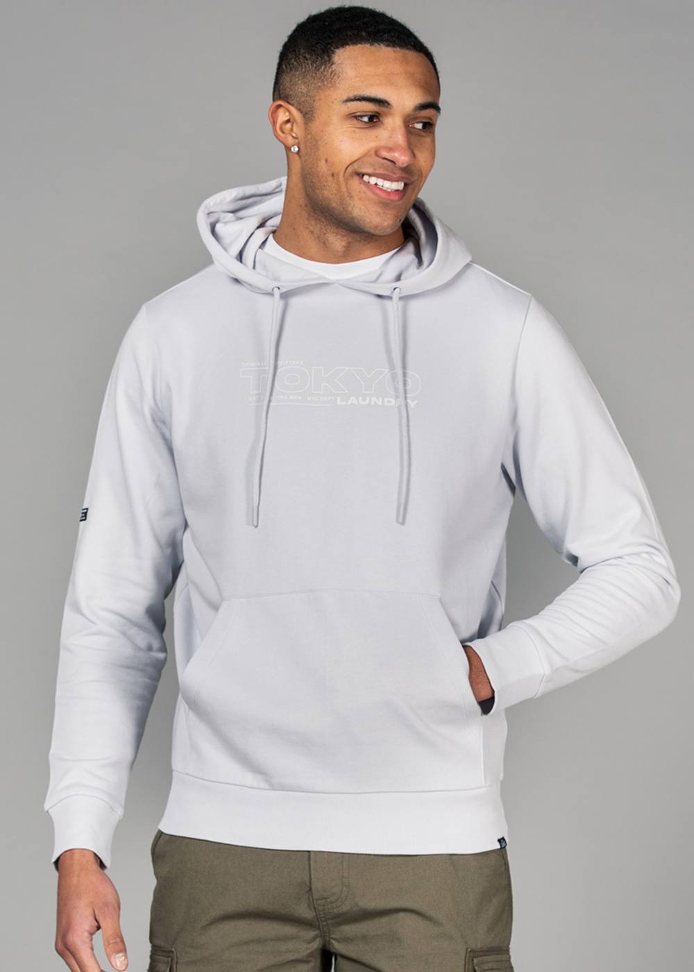Tokyo Laundry Men Cotton Blend Hoody with Branding Print in Grey | Size: Medium