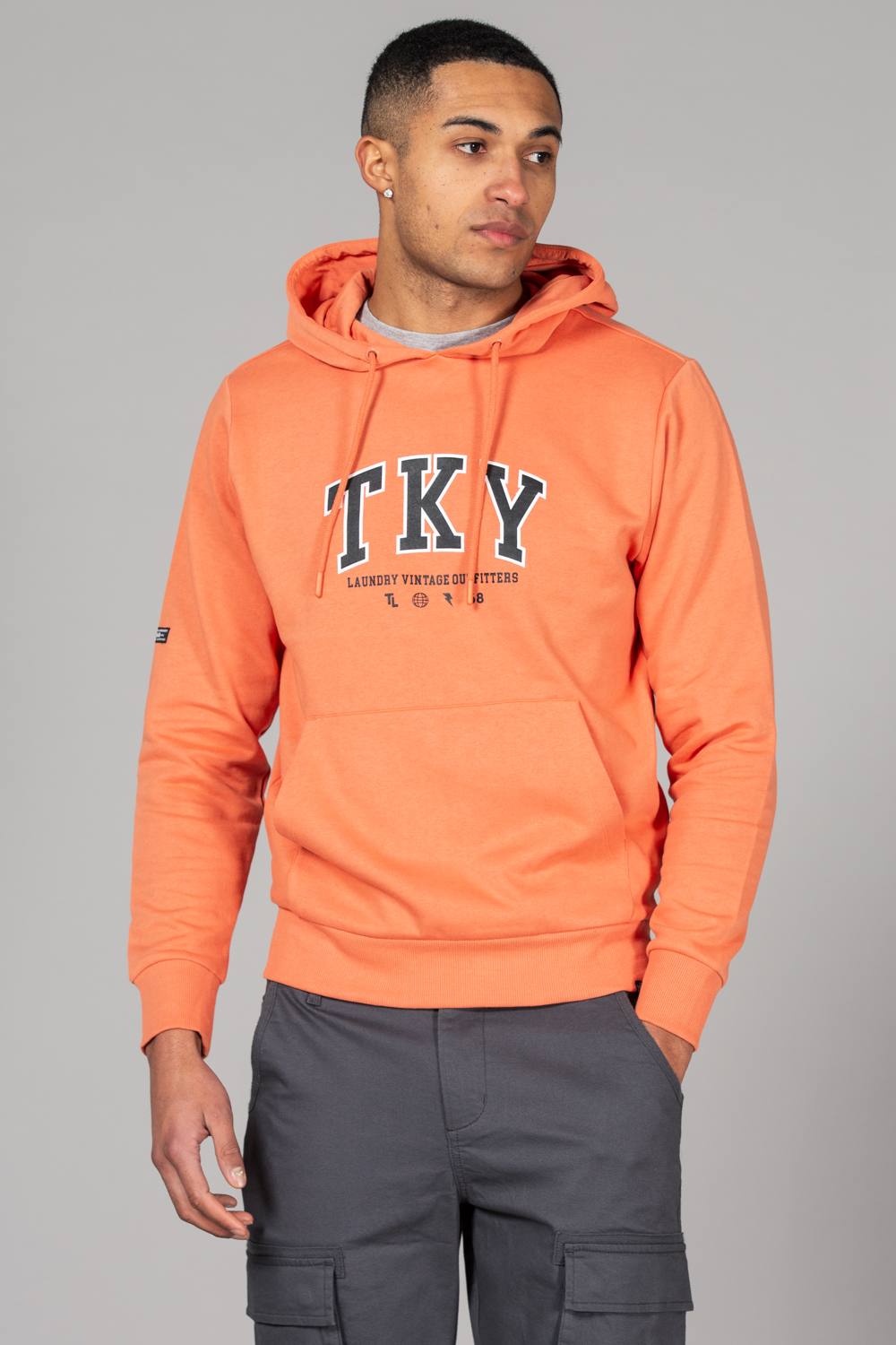 Tokyo Laundry Men Cotton Blend Hoody with Branding Print in Orange | Size: large