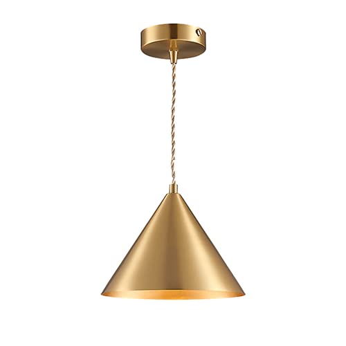 RLKHXBS Indoor Chandelier, Brass Cone Pendant Ceiling Lamp Post- Minimalist Chandelier LED Lighting Fixture, Height Adjustable Suspension Wire Lights for Bedroom Bedside Living Room Storehouse