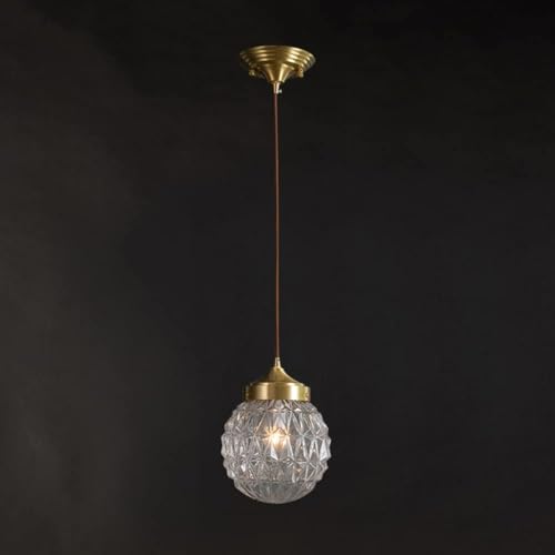 RLKHXBS Indoor Chandelier, Glass Crystal Pendant Light V-intage Single Head Brass Lamp Holder Ceiling Lamp for Living Room Aisle Kitchen Dining Room Restaurant And Bar Chandelier
