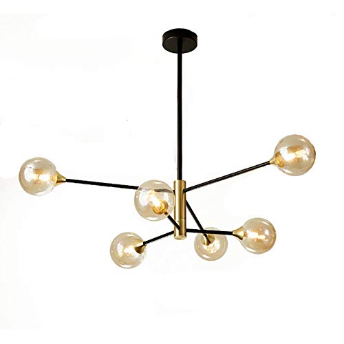 CLSDRZC Magic Bean Chandelier,Sputnik Mid Century Nordic Handblown Glass Matte Black & Brushed Brass Finishes Ceiling Lamp Molecular Lamp-Cognac 6 head