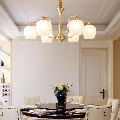 KKXXYQFC Chandelier Lighting,3-5-6-8 Head Industrial Pendant Light Mid Century Gold Chandeliers For Dining Room Kitchen Living Room,White Glass Brushed Brass Ceiling Lamp
