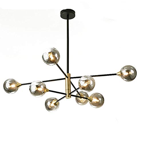 CLSDRZC Magic Bean Chandelier,Sputnik Mid Century Nordic Handblown Glass Matte Black & Brushed Brass Finishes Ceiling Lamp Molecular Lamp-Smoke gray 8 head