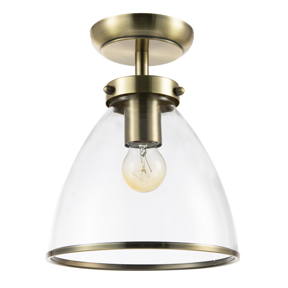 Industrial Style Antique Brass Ceiling Lamp Fitting with Transparent Glass Sh...