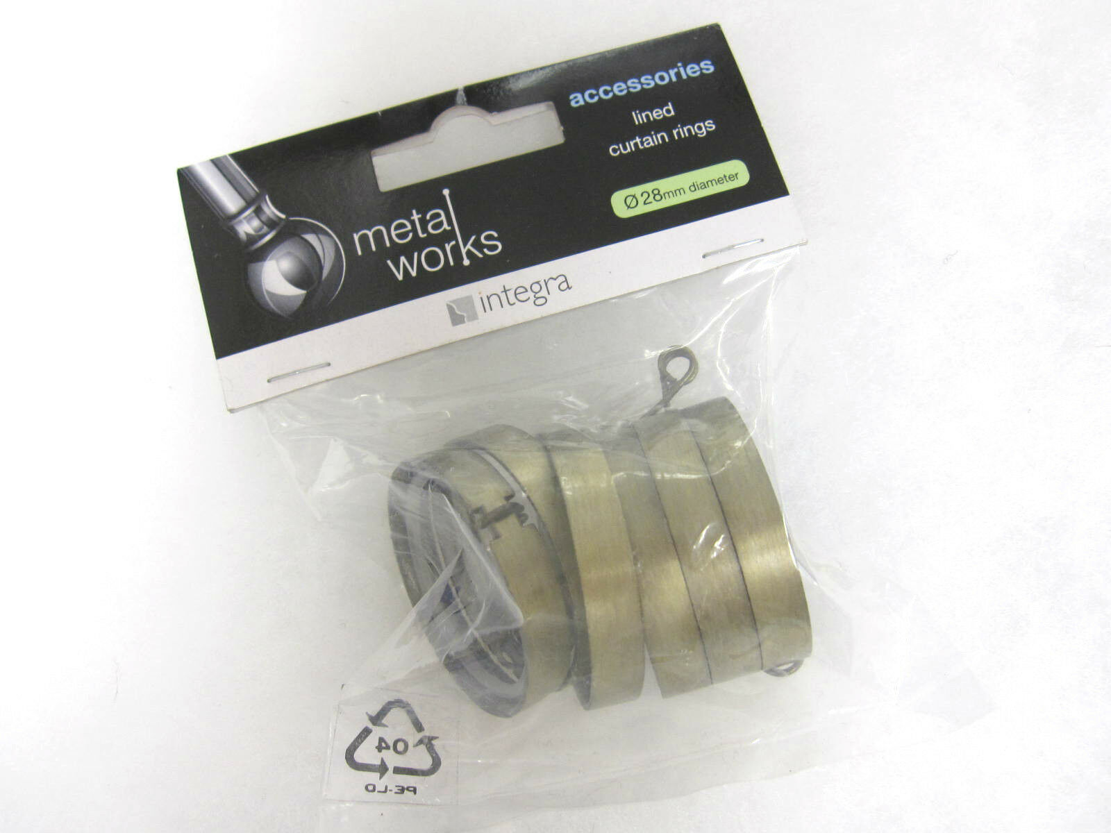 6 Integra flat brass curtain pole rings for 28mm poles Internal dia 38mm