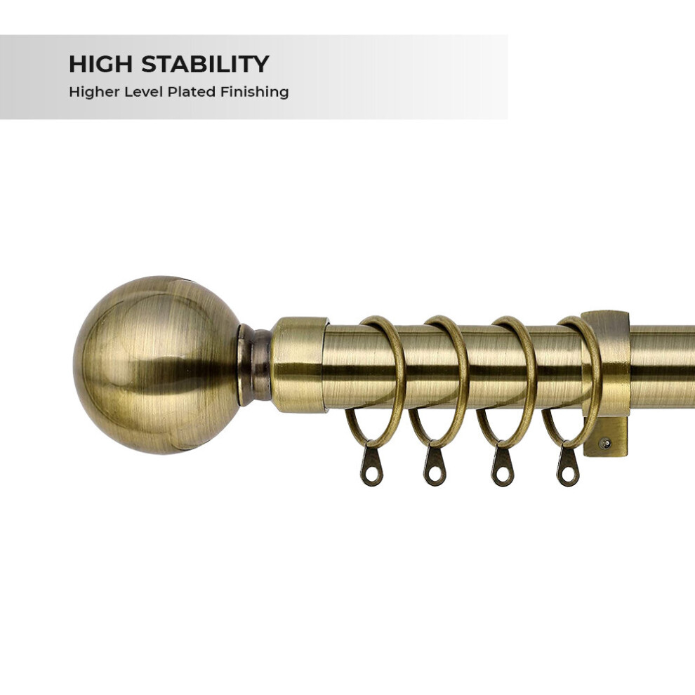 (210 - 320 cm, Antique Brass (Ball)) 19 mm Extendable Metal Curtain Poles Antiqe Brass,Copper, Silver & Black Color