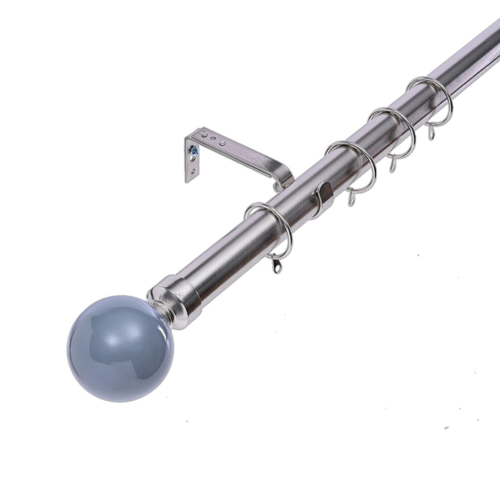 (210 - 320 cm, Brushed Steel (Ball)) 19 mm Extendable Metal Curtain Poles Antiqe Brass,Copper, Silver & Black Color