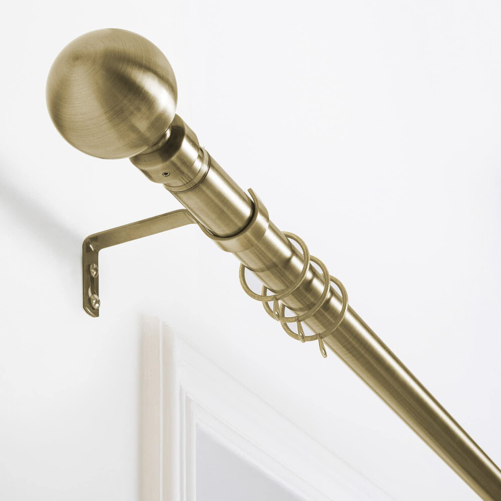 Aspire Homeware Curtain Poles Metal Plain Ball Extendable Curtain Pole 160 cm to 300 cm Antique Brass Adjustable Curtain Rod 28 mm Diameter with 60 mm Finials, Rings, Brackets, and Fittings Set