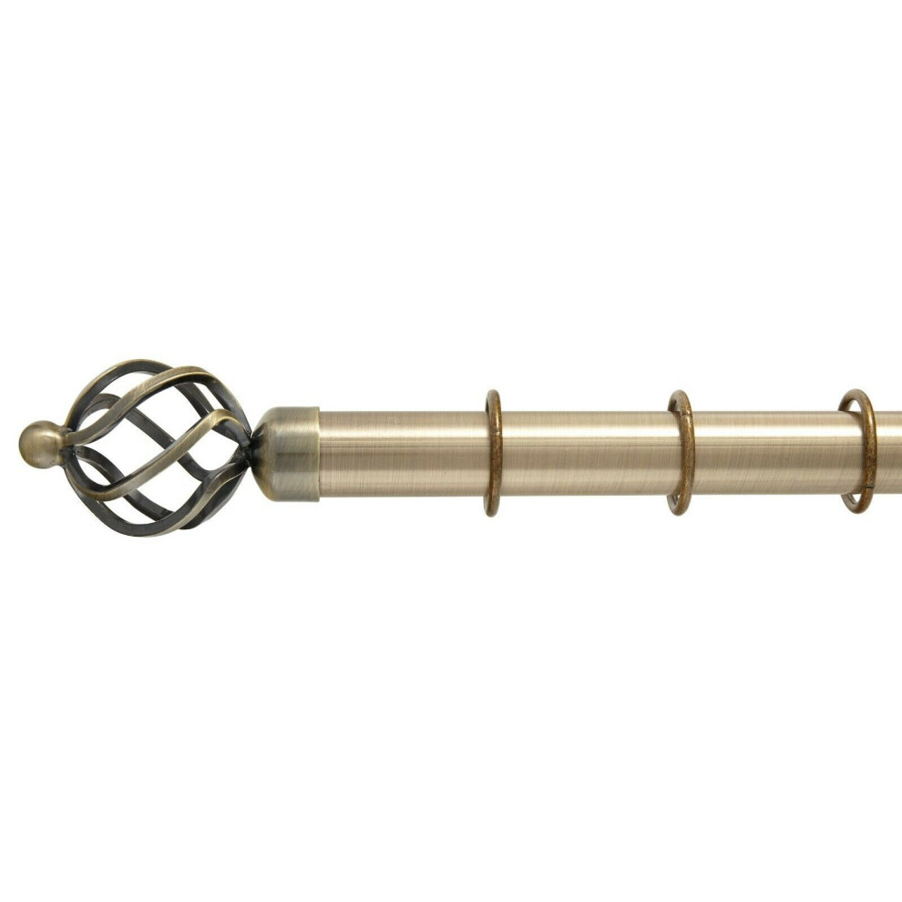 (180 cm, Antique Brass Cage) Oxford 28 mm Metal Curtain Poles Classic Ball & Cage Finials Curtain Pole Fixing