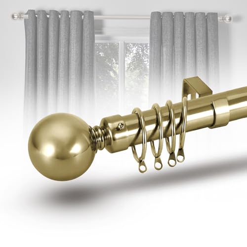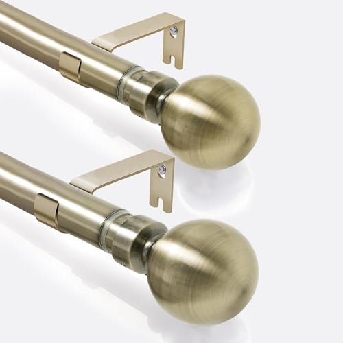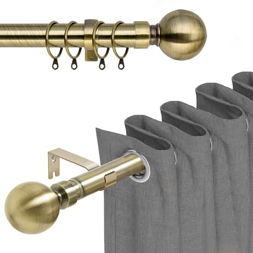 Curtain Poles Ball Finials Antique Brass Extendable Curtain Poles 76 to 320 cm with 3 Piece Curtain Brackets. 30 to 126 inch length for Living room, Bedroom, Kitchen room