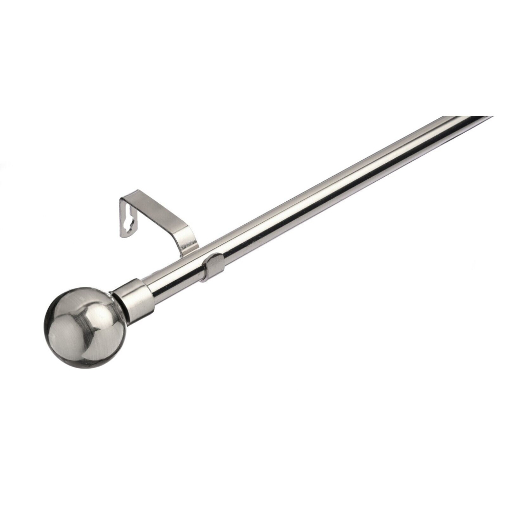 (120 - 210 cm, Brushed Steel (Ball)) 19 mm Extendable Metal Curtain Poles Antiqe Brass,Copper, Silver & Black Color