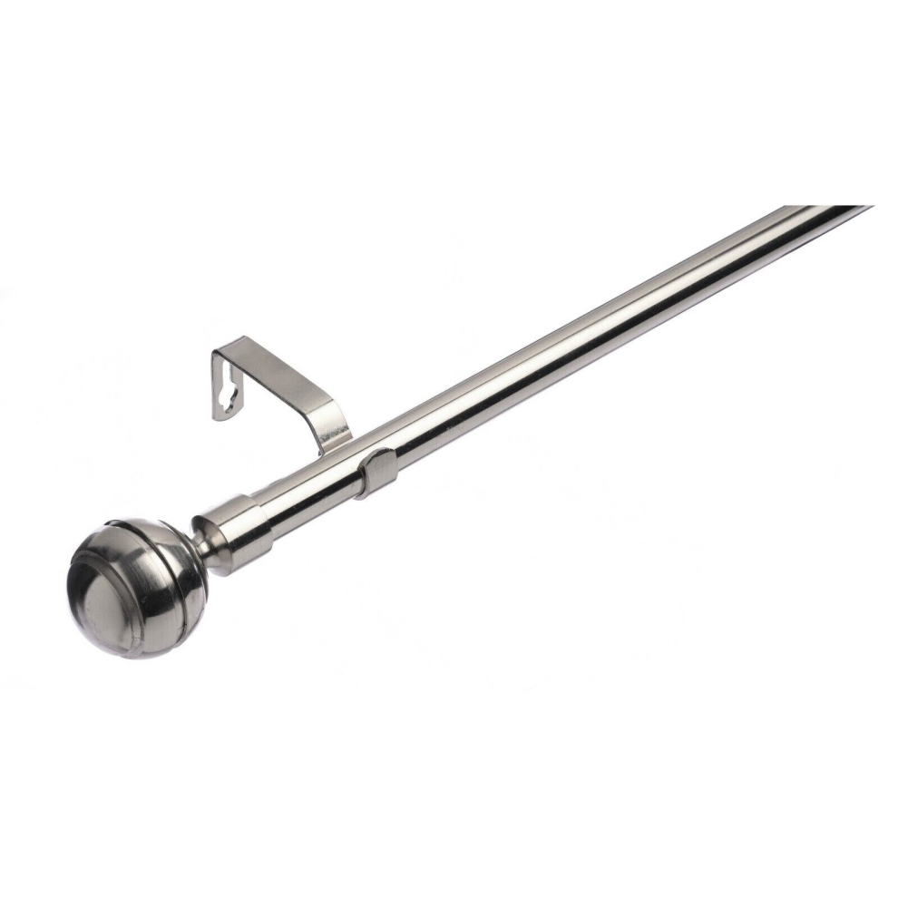 (70 - 120 cm, Brushed Steel (Ribbed Ball)) 19 mm Extendable Metal Curtain Poles Antiqe Brass,Copper, Silver & Black Color