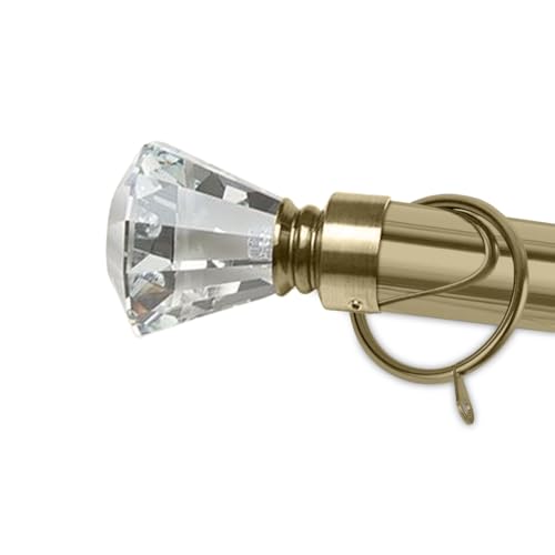 Hafaa Extendable Curtain Poles for Eyelet Curtains 160-300cm Antique Brass Sapphire Crystal Adjustable Curtains Rod with Finials, Rings, Brackets & Fittings Set