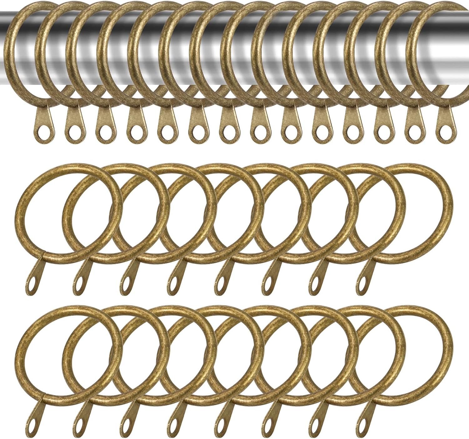 Heyu-Lotus 50Pcs Metal Brass Curtain Rings with Hanging Hooks for Poles and Rods
