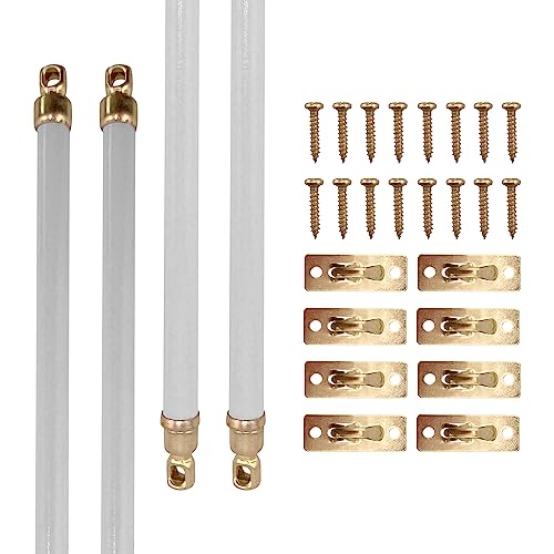 Amazing Drapery Hardware White Swivel Sash Curtain Rods with Brass Ends, Set of 4 (Hardware Included) - Adjustable Length 11-19 Inches, Easy to Install Metal Rods for Doors, Windows, and Sidelights