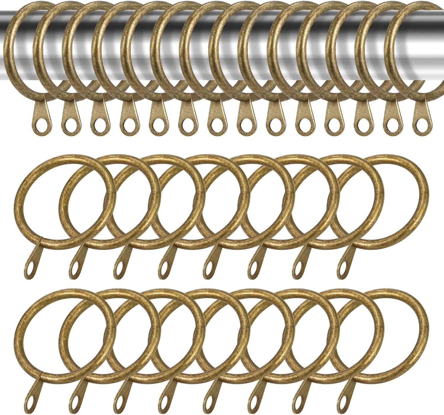 Antique Brass Curtain Rings with Eyelets for Curtain Rods (Set of 30 PCS Curtain Rings) (1 inch Inner Diameter)