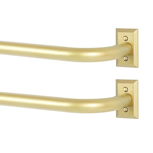 TANGWIN Gold Wrap Around Curtain Rods 2 Pack:Blackout Heavy Duty Adjustable Window Curtain Rod Room Darkening,Modern Industrial Curved French Return Metal Drapery Rods Easy Install,Brass Gold 48-90"