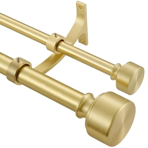 Lwiiom Double Curtain Rods with Aluminum End Cap and Full Surround Brackets,1-Inches Front and 5/8 Inches Back Adjustable between from 36 to 72 Inches (3-6 Feet),Brass Double Window Drapery Rod for