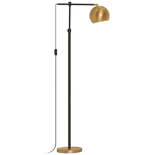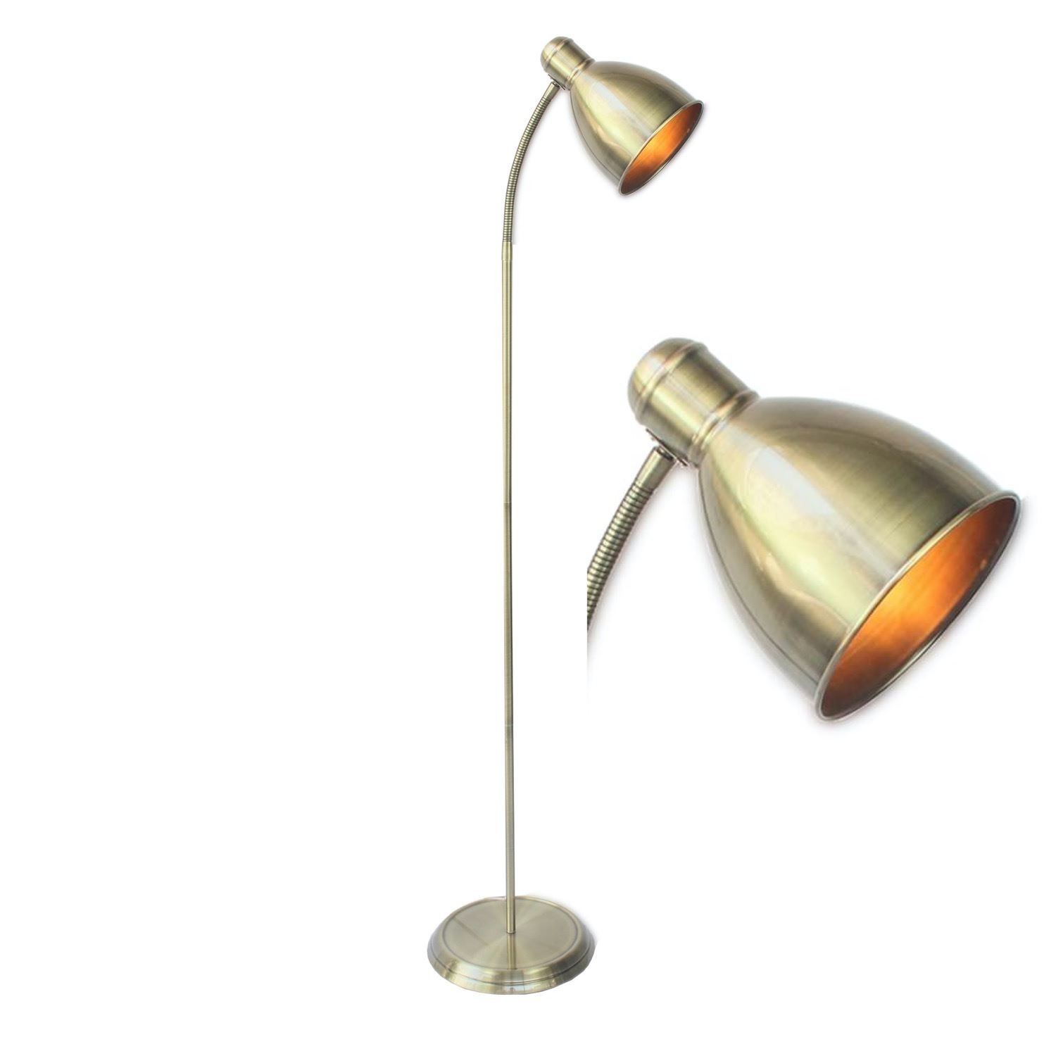 Curved Arm Floor Lamp Antique Brass Tall Free Standing Metal Retro Reading Light