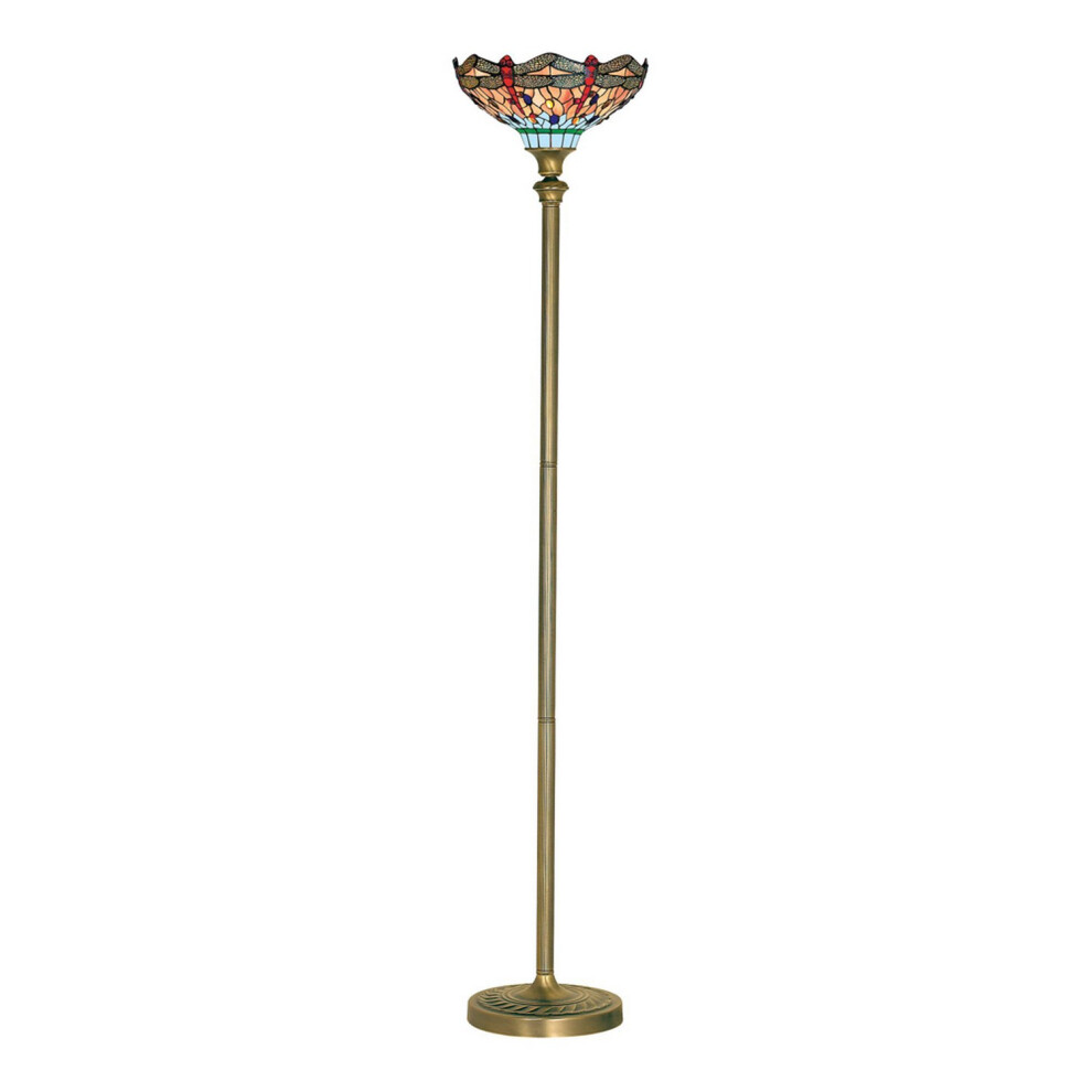 1.6m Tiffany Multi Light Floor Lamp Antique Brass & Stained Glass Shade i00021