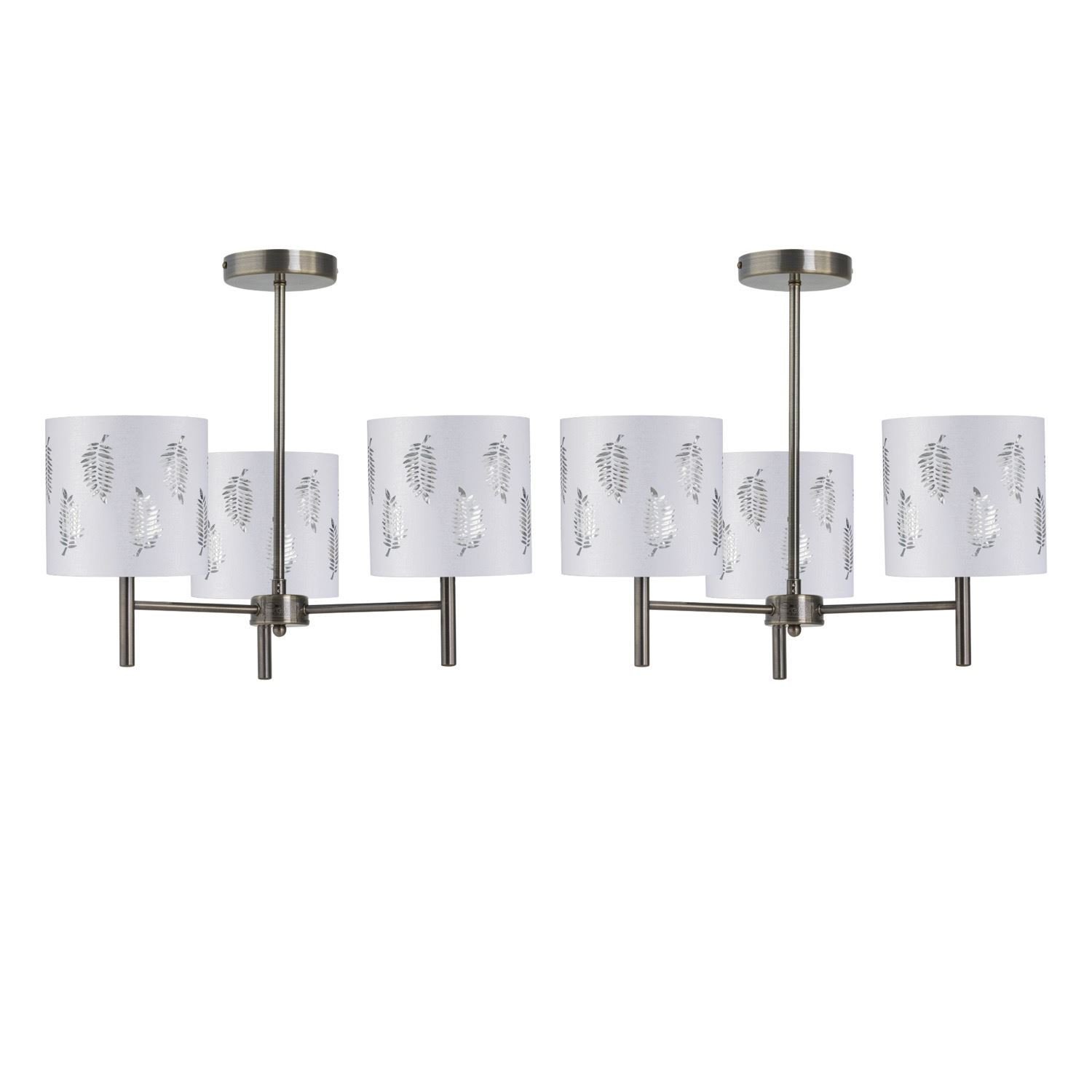 Set of 2 Modern Antique Brass Ceiling Light Fittings with White Fern Shades