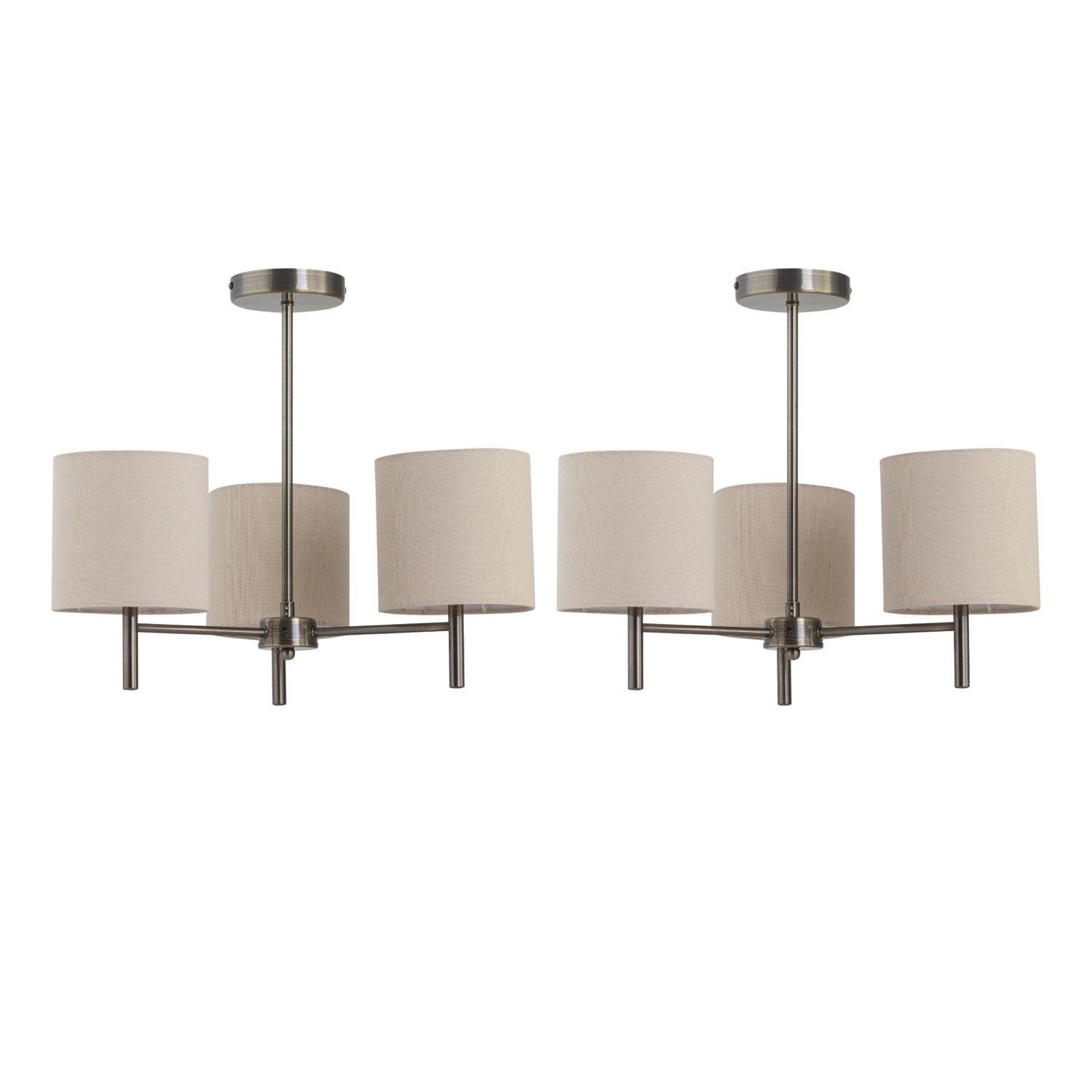 Set of 2 Modern Antique Brass Ceiling Light Fittings with Natural Linen Shades