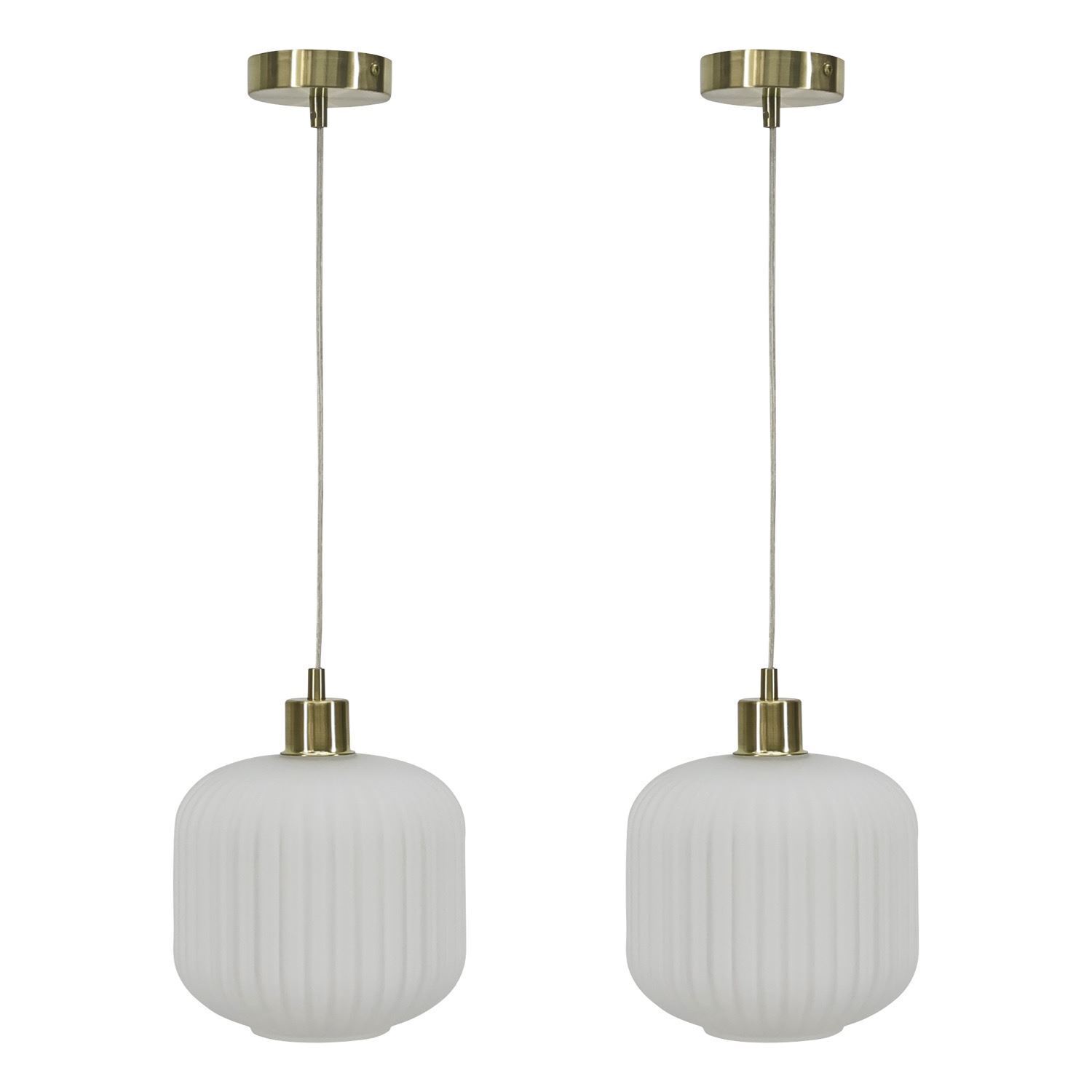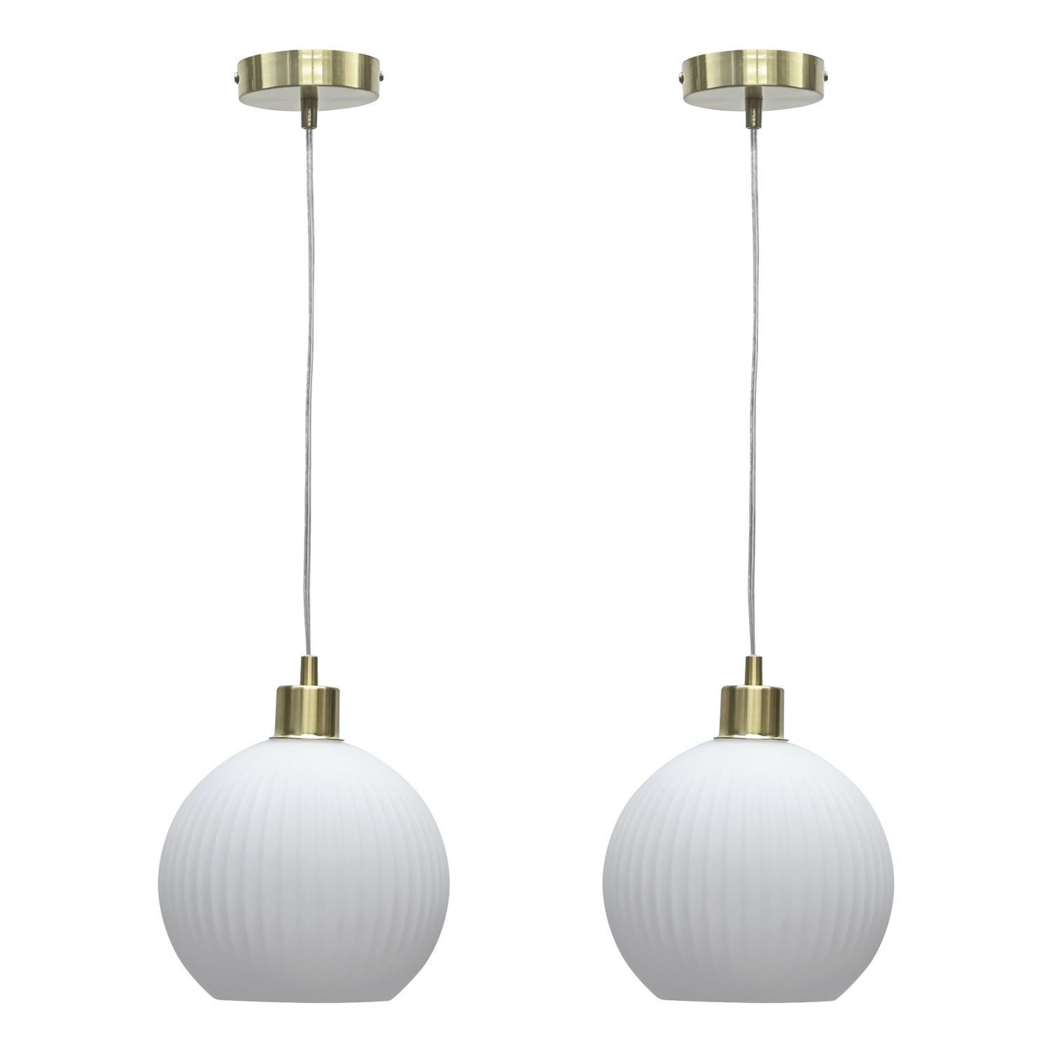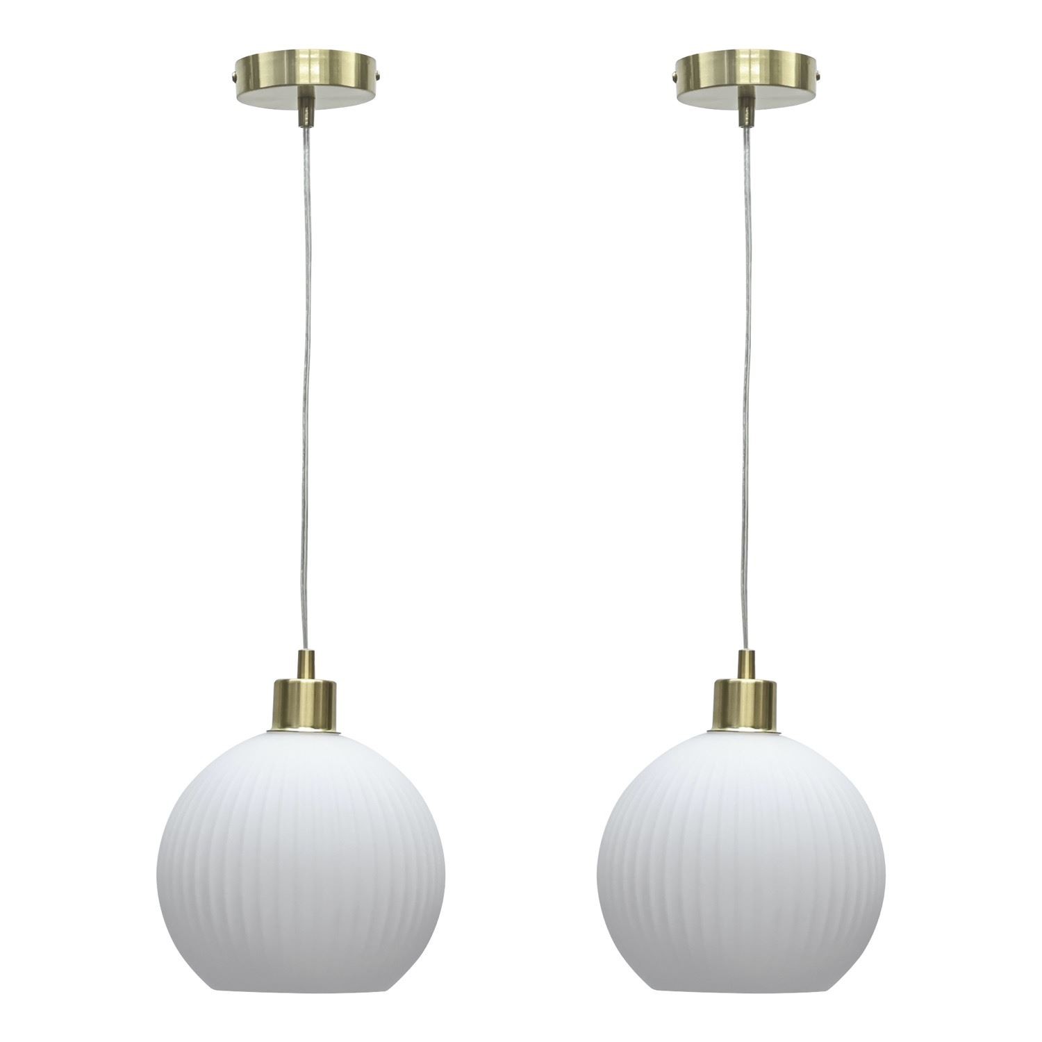 Set of 2 White Glass Satin Brass Ceiling Light Kitchen Dining Pendant Fittings