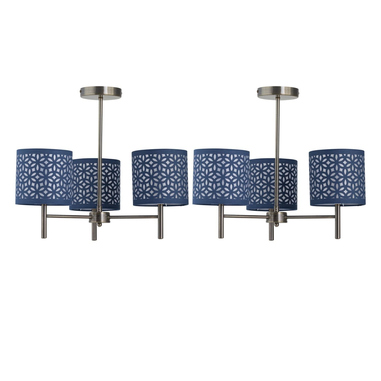 Set of 2 Modern Antique Brass Ceiling Light Fittings Navy Blue Cut Out Shades