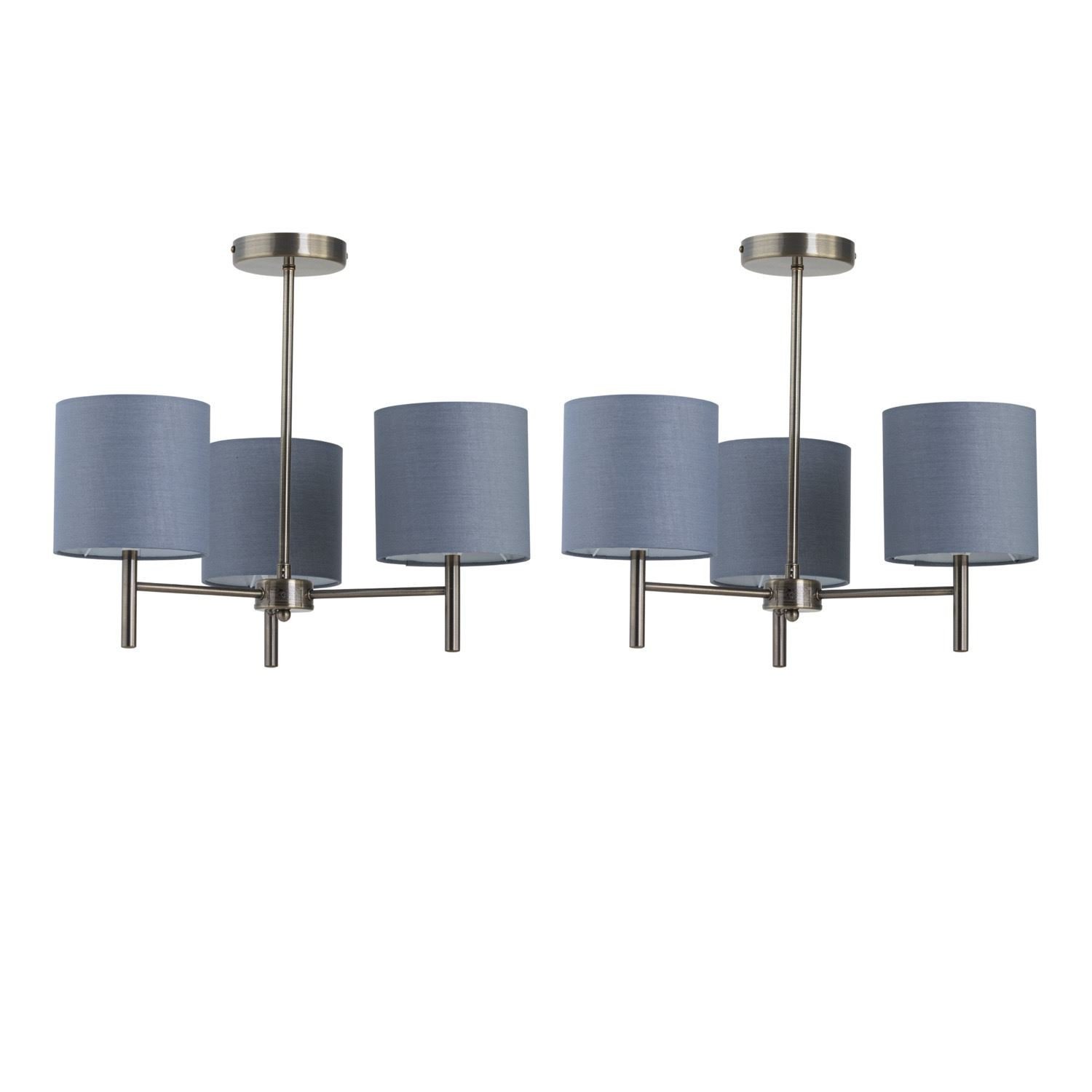 Set of 2 Modern Antique Brass Ceiling Light Fittings with Grey Cotton Shades