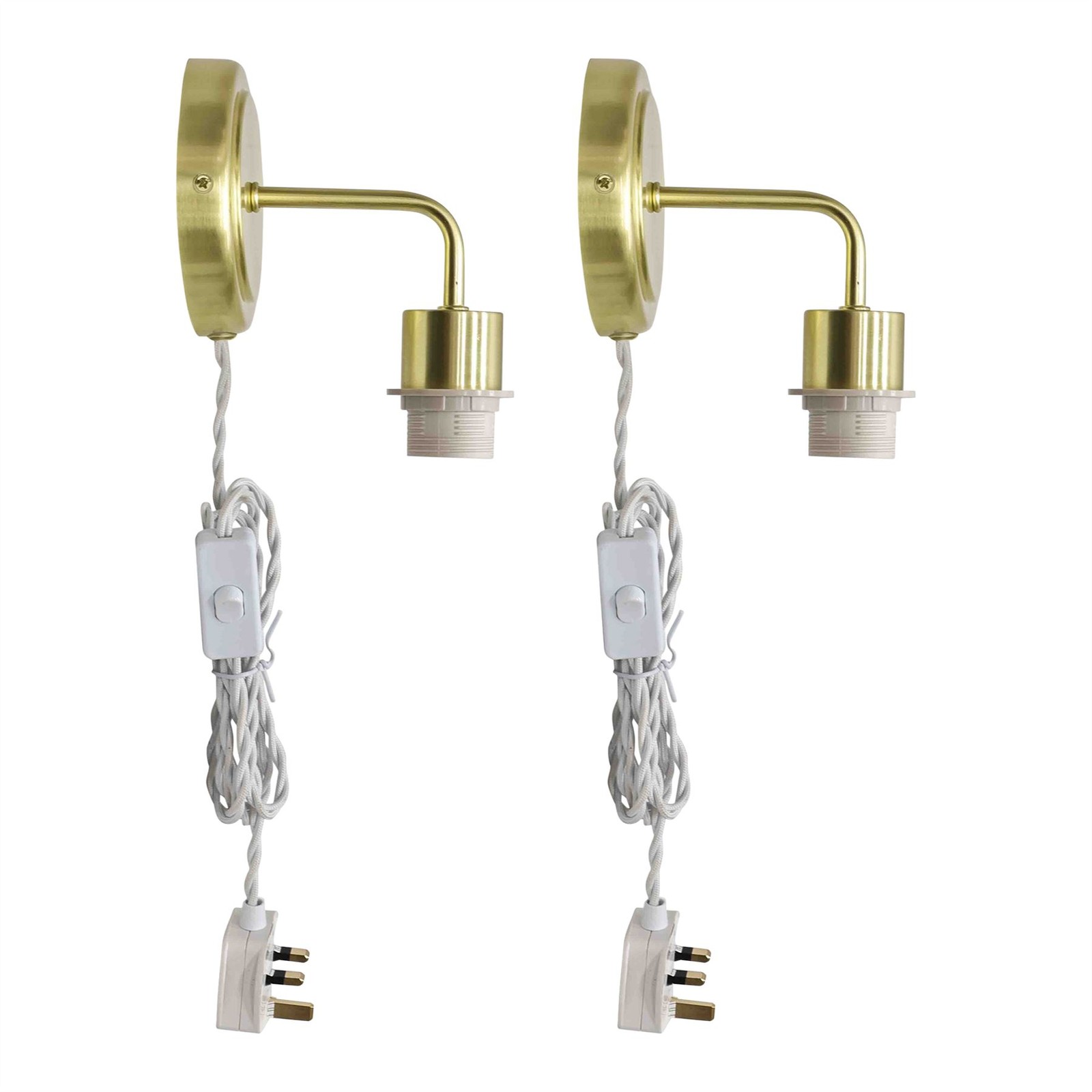 Set of 2 Modern Satin Brass Plug in Wall Light Bedside Reading Lamp Fittings