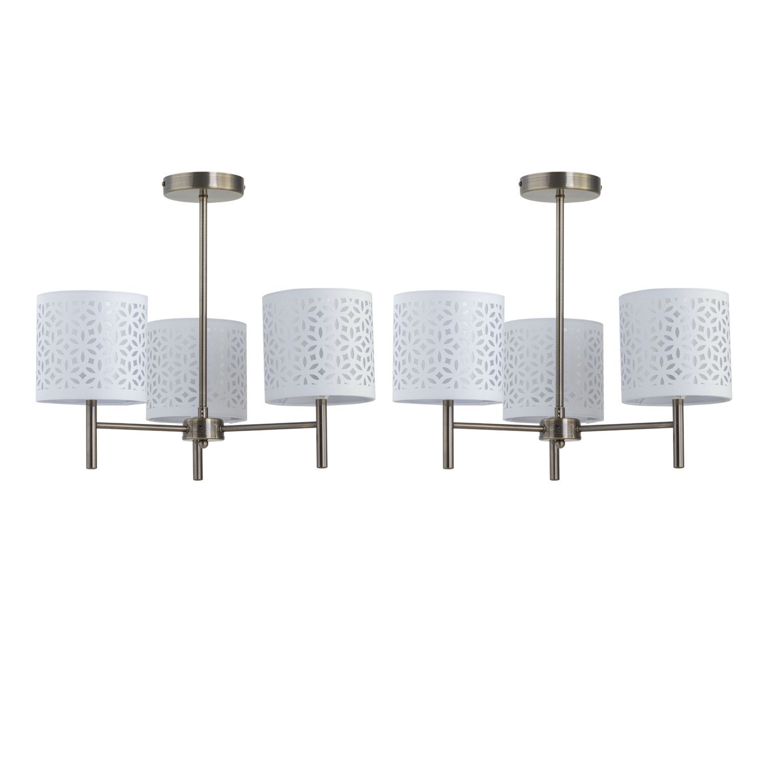 Set of 2 Modern Antique Brass Ceiling Light Fittings with White Cut Out Shades