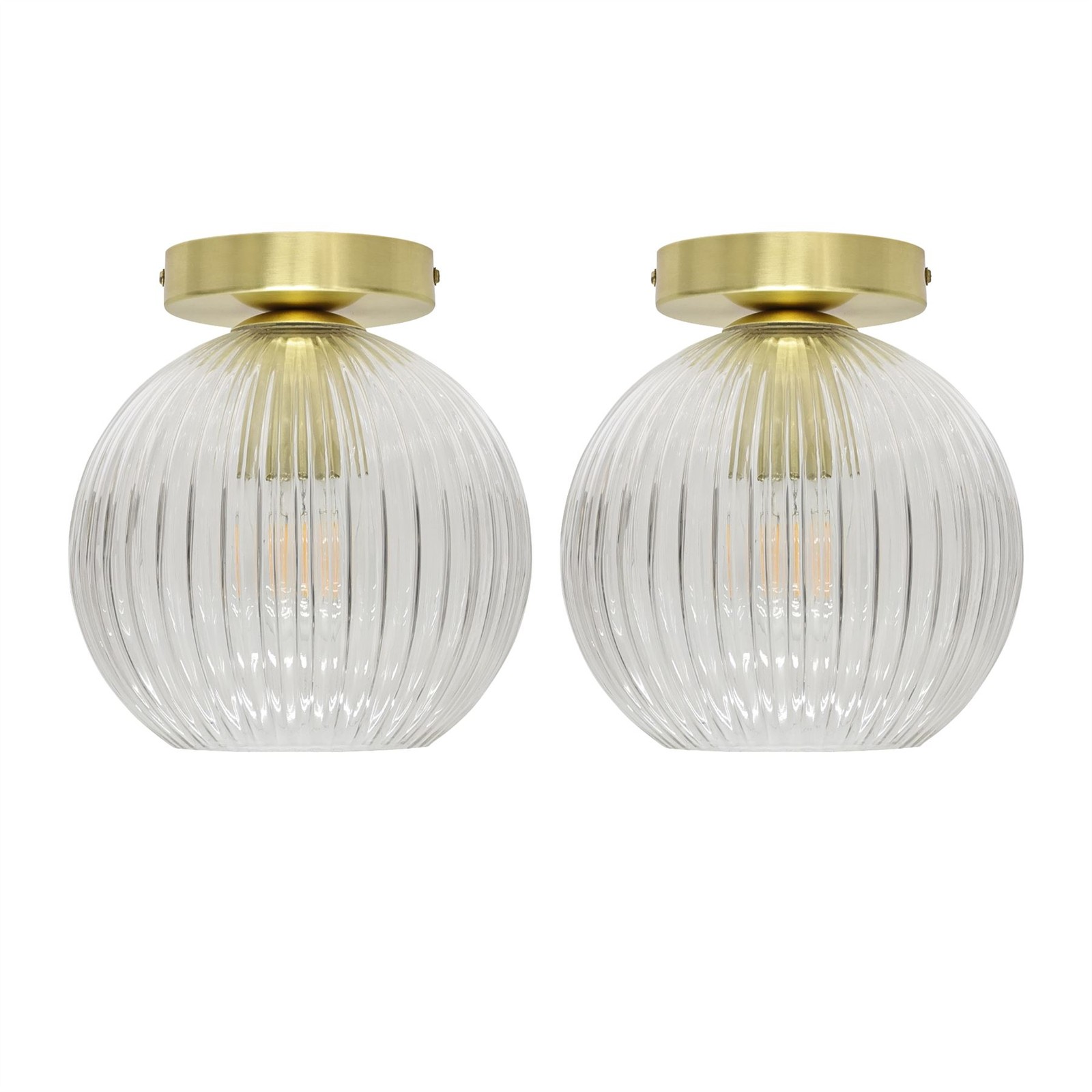 Set of 2 Ribbed Glass Satin Brass Ceiling Light Fittings Low Ceiling Lighting
