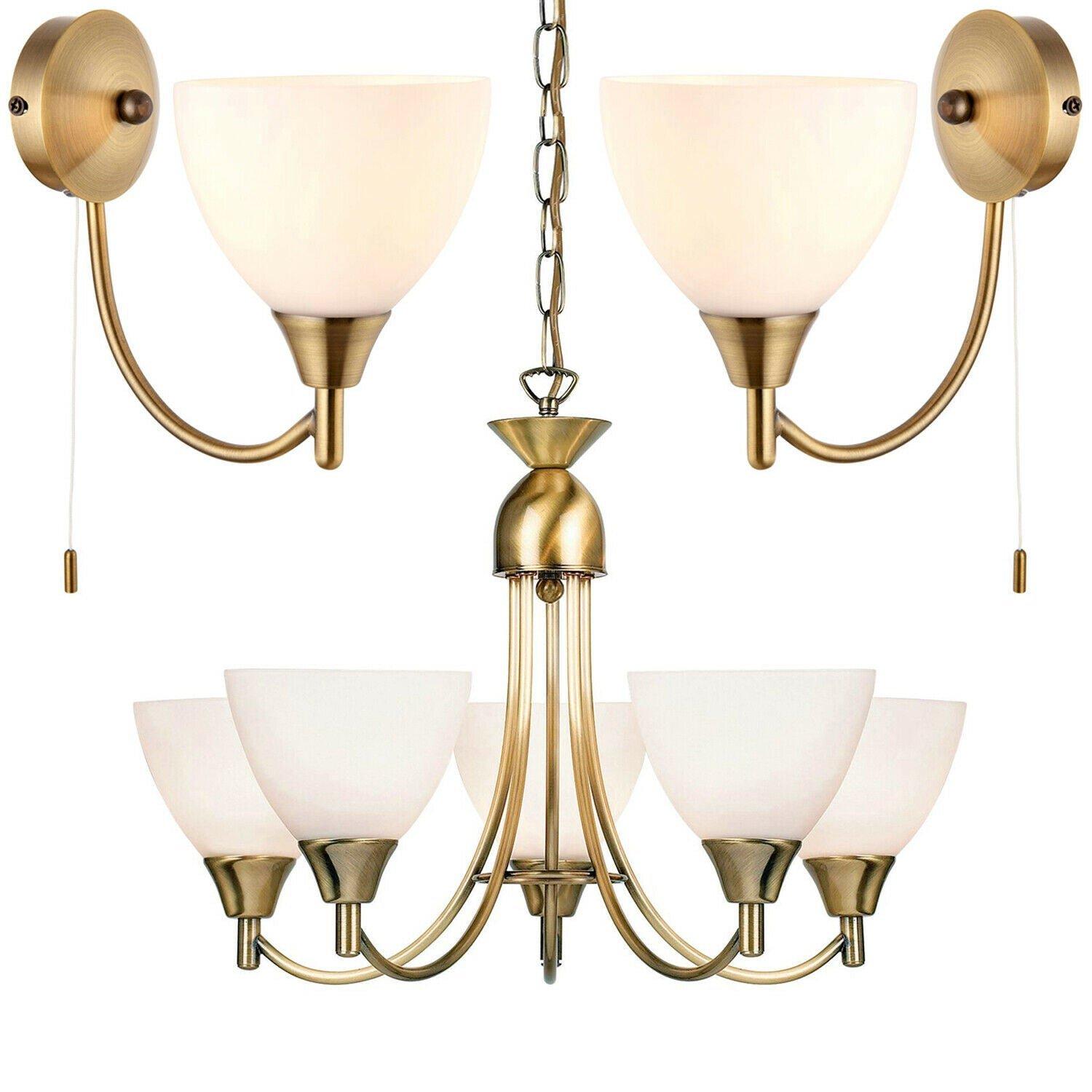5 Lamp Ceiling & 2x Wall Light Pack Antique Brass Glass Matching Indoor Fittings