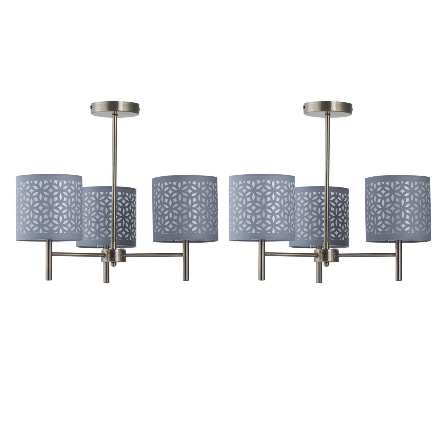 Set of 2 Modern Antique Brass Ceiling Light Fittings with Grey Cut Out Shades