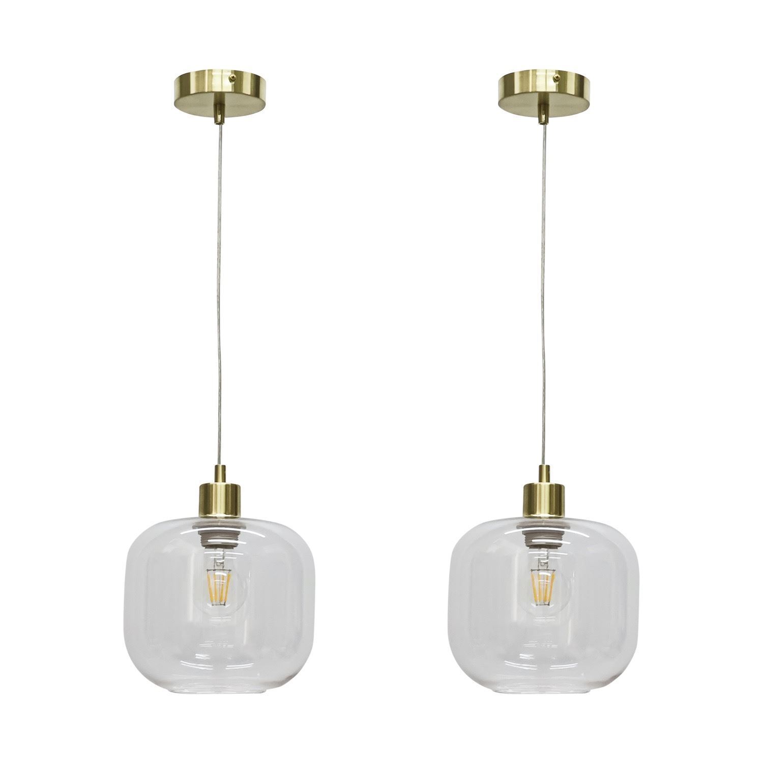 Set of 2 Modern Glass Satin Brass Ceiling Light Kitchen Dining Pendant Fittings