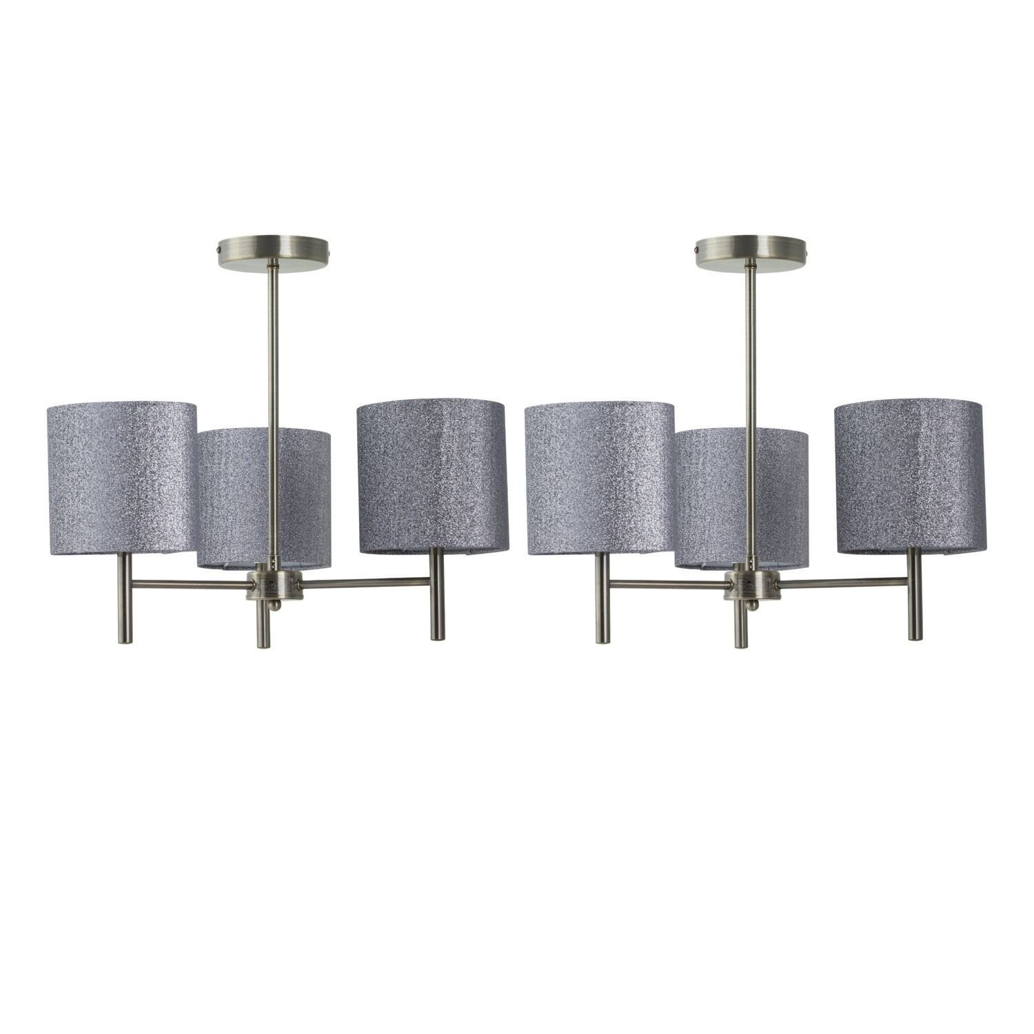 Set of 2 Modern Antique Brass Ceiling Light Fittings Silvery Grey Glitter Shades