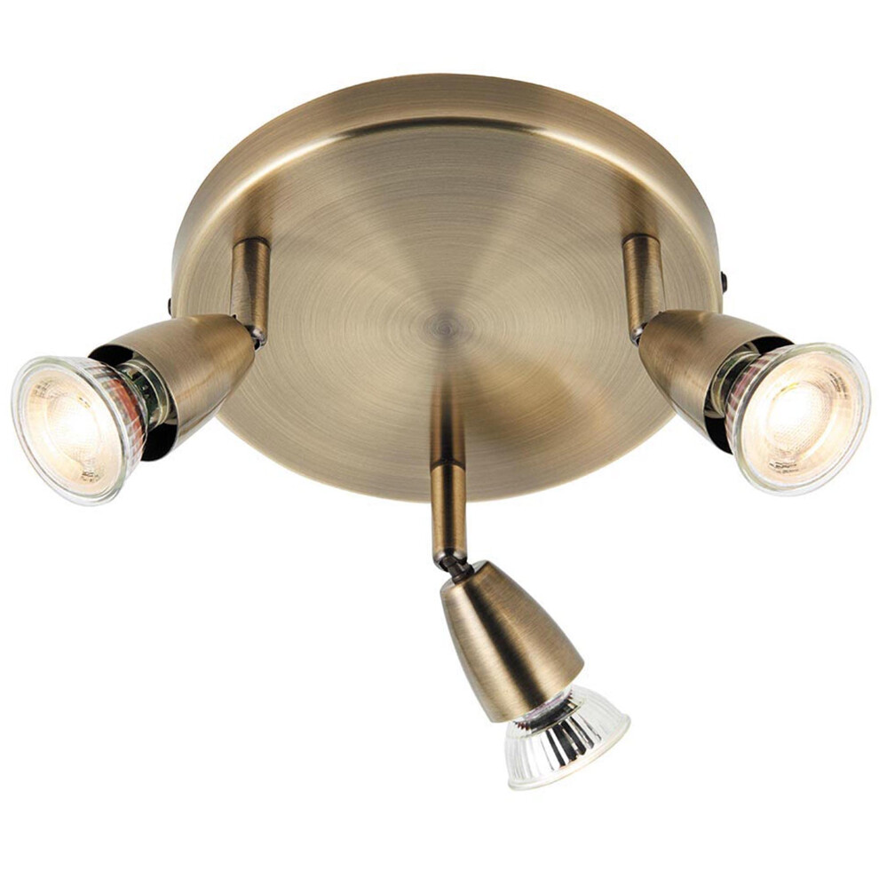 Betta Lighting Ceiling Light Fittings - 3 Light Round Spotlight Fitting in Antique Brass Finish - Fully Adjustable & Dimmable Spot Lights - Requires 3