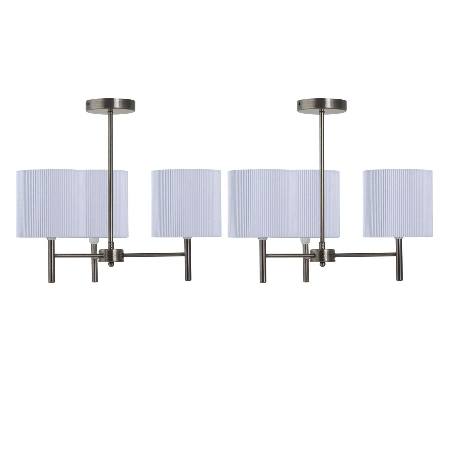 Set of 2 Modern Antique Brass Ceiling Light Fittings with White Pleated Shades