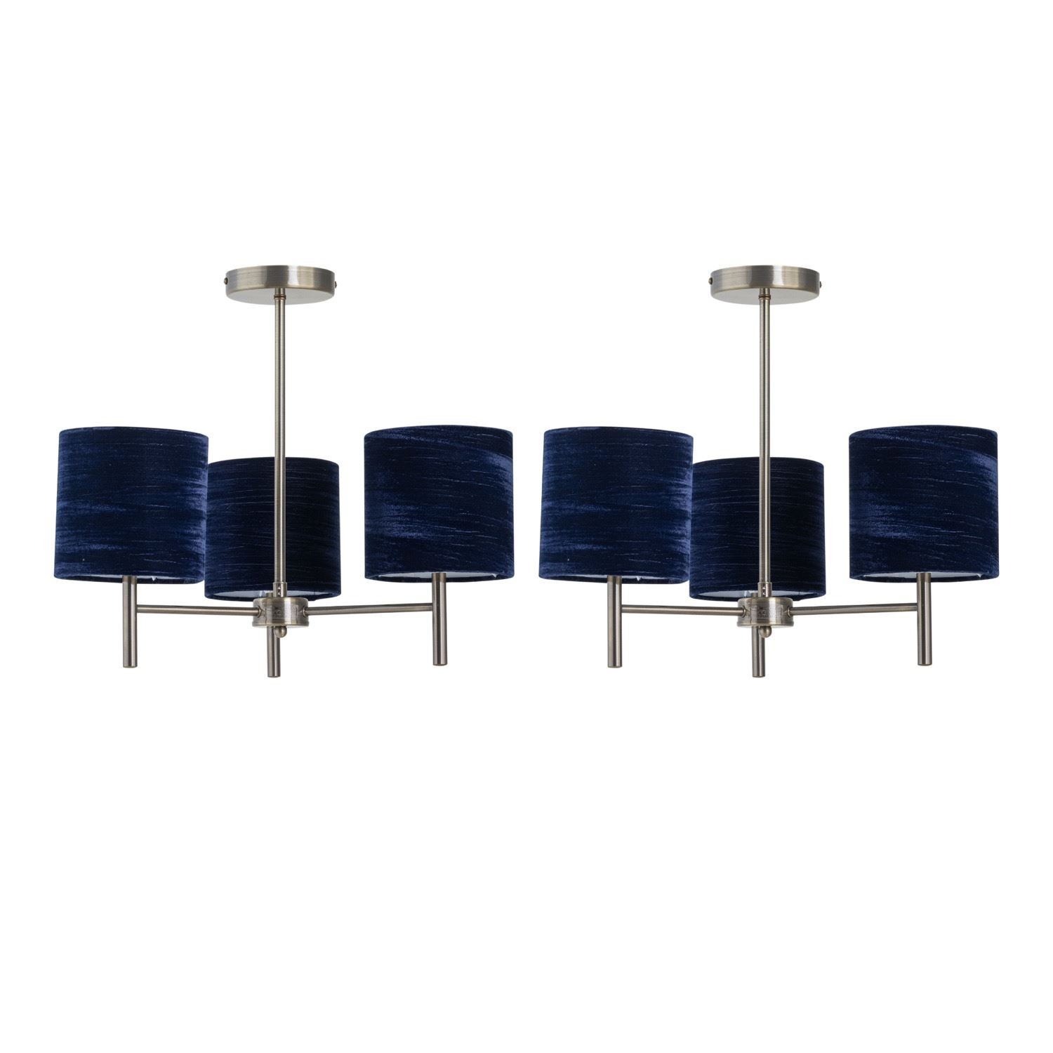 Set of 2 Modern Antique Brass Ceiling Light Fittings Navy Crushed Velvet Shades