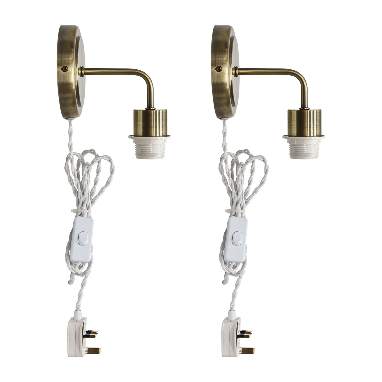 Set of 2 Modern Antique Brass Plug in Wall Light Bedside Reading Lamp Fittings