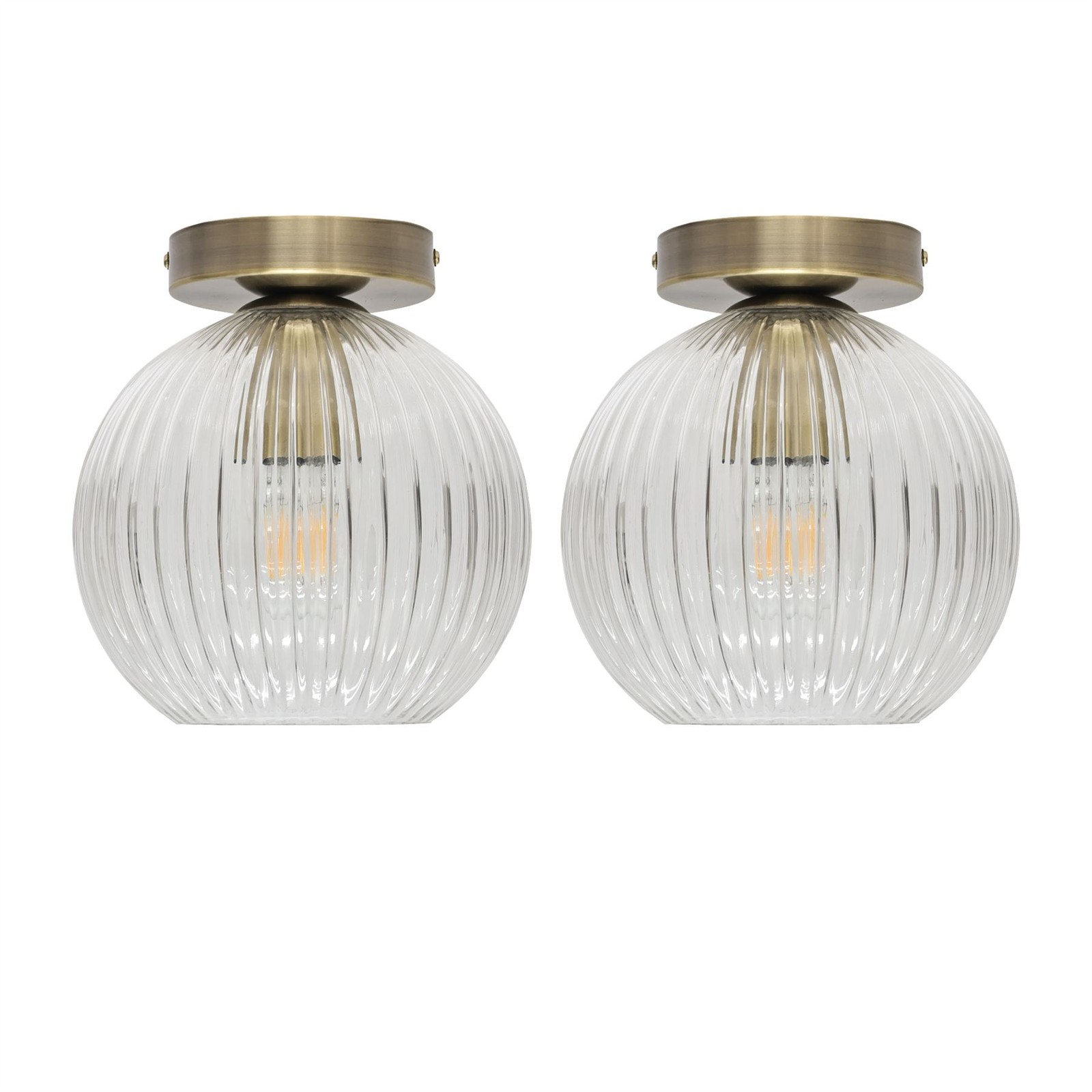 Set of 2 Ribbed Glass Antique Brass Ceiling Light Fittings Low Ceiling Lighting