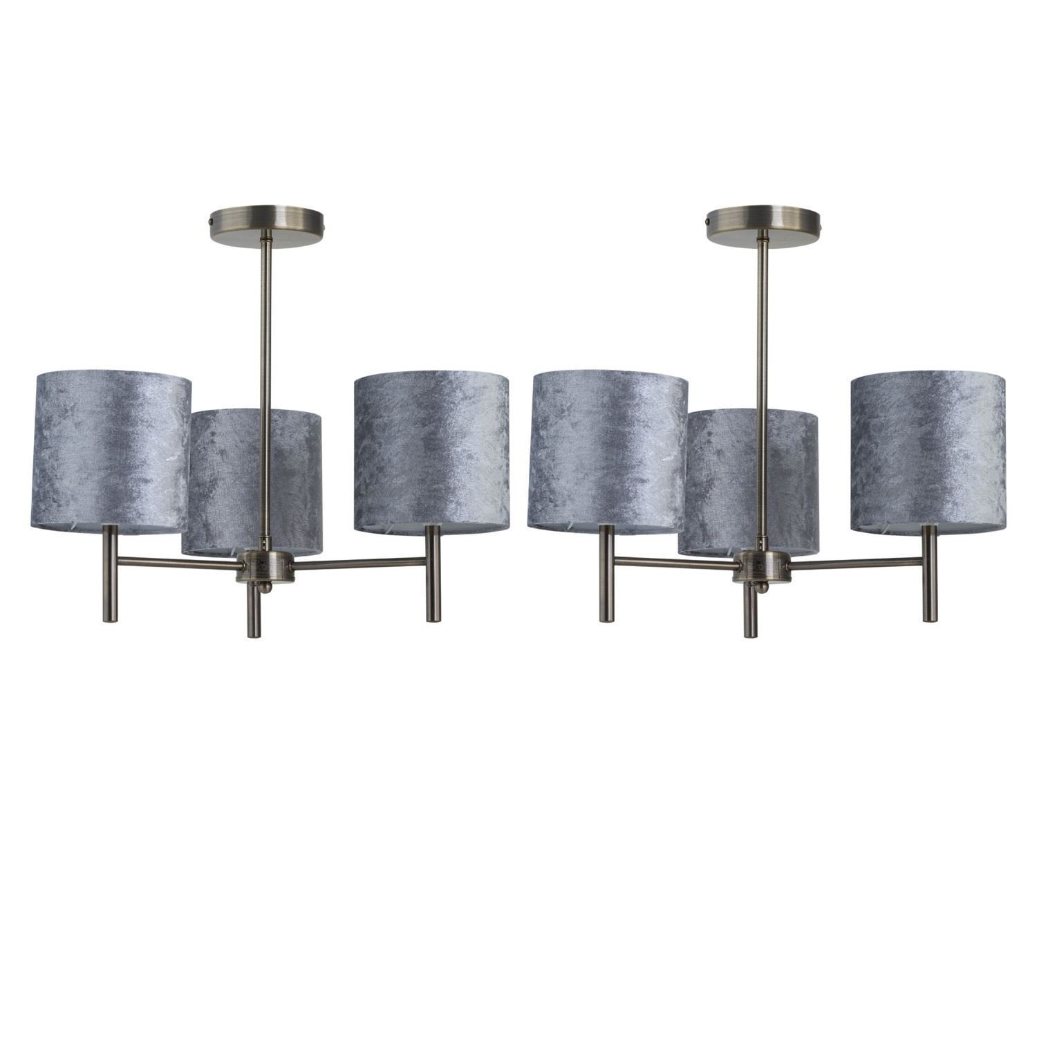 Set of 2 Modern Antique Brass Ceiling Light Fittings Grey Crushed Velvet Shades