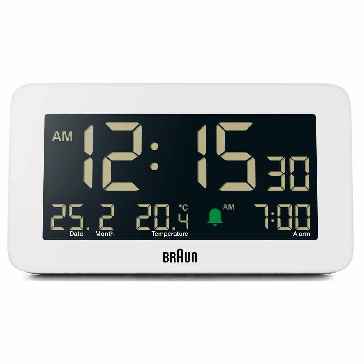 Braun Digital Alarm Clock With Date, Month And Temperature - White, White