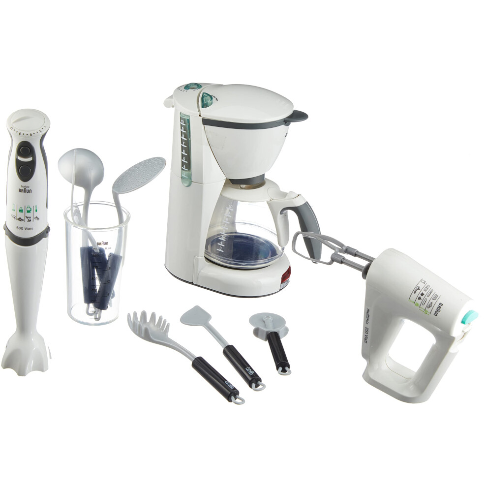 Theo Klein 9625 Braun combo set I With battery-operated coffee machine, hand mixer and hand blender including accessories I Toys for children aged 3