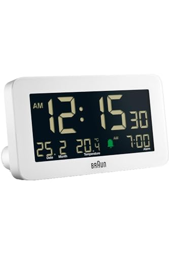 Braun Digital Alarm Clock With Date, Month And Temperature - White, White