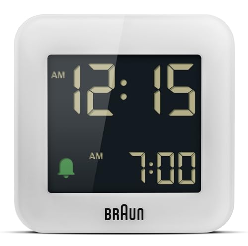 Braun Digital Travel Alarm Clock with Snooze, Compact Size, Negative LCD Display